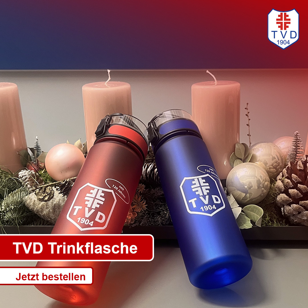 Wir haben jetzt Trinkflaschen im TVD-Design. Wenn ihr eine haben möchtet, könnt ihr diese direkt auf der Homepage (Unser Verein > TV Trinkflasche) erwerben. Die Flaschen fassen 750ml und sind in rot und blau erhältlich.