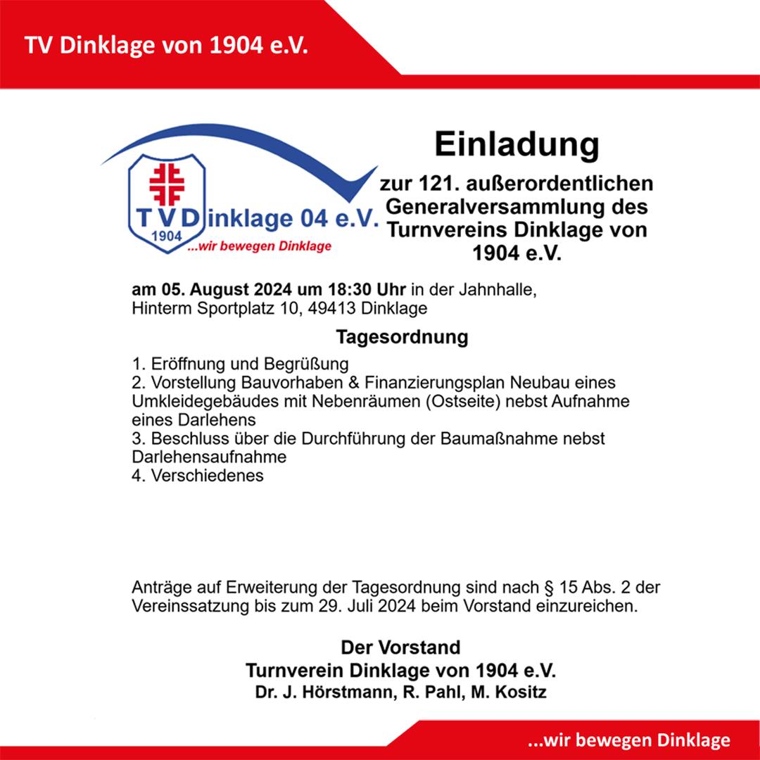 Am 5. August 2024 um 18:30 Uhr findet die 121. außerordentliche Generalversammlung statt.