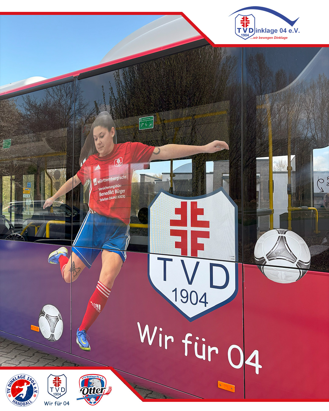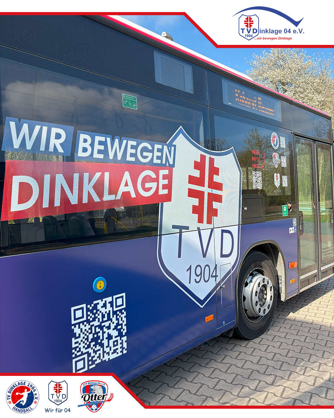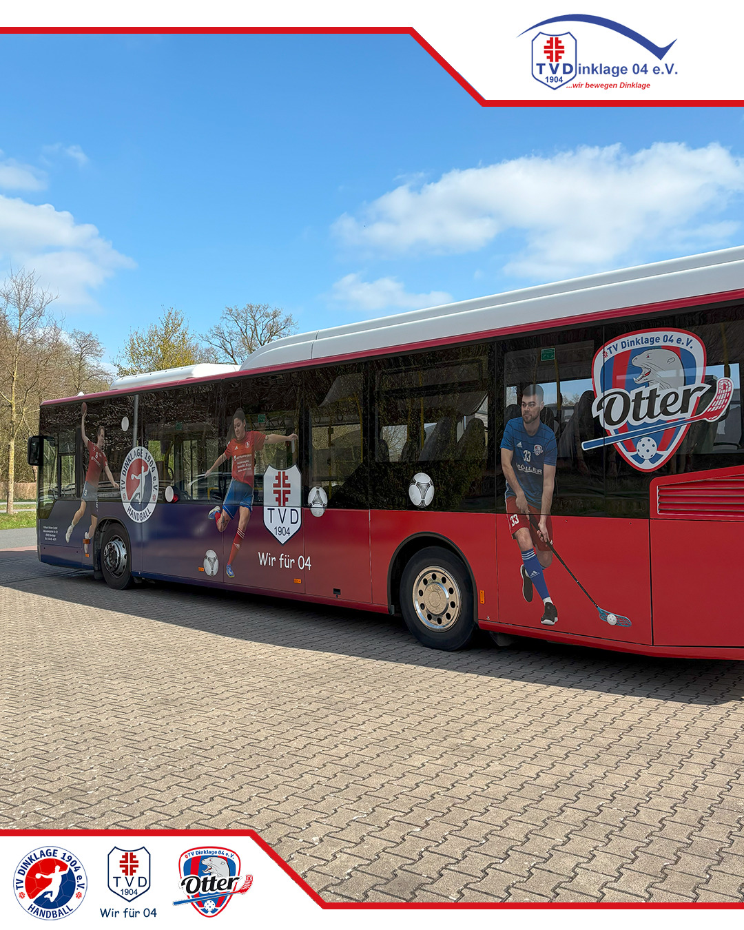 Die Handball-, Fußball- und Floorballabteilung des TV Dinklage haben in gemeinsamer Zusammenarbeit einen neuen Fanbus gestaltet. Diesen wollen wir euch hiermit voller Stolz präsentieren. Neben Spielerporträts auf der einen Seite, präsentiert der Bus mit einem gemeinsamen Gruppenfoto auf der anderen Seite auch den Zusammenhalt über die Abteilungen hinweg.