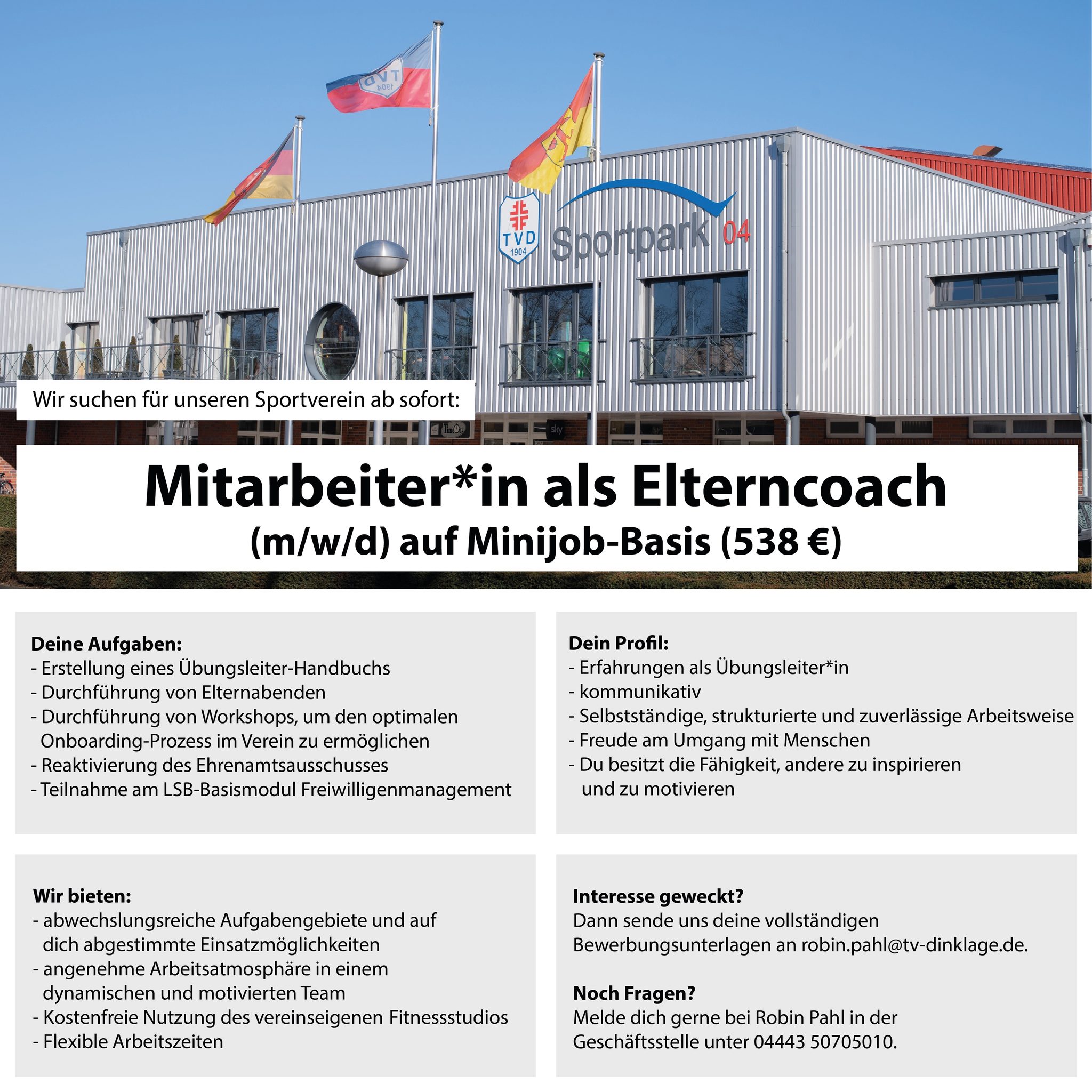 Im größten Sportverein im Oldenburger Münsterland zu arbeiten klingt für dich interessant? Dann bewirb dich bei uns als Elterncoach!