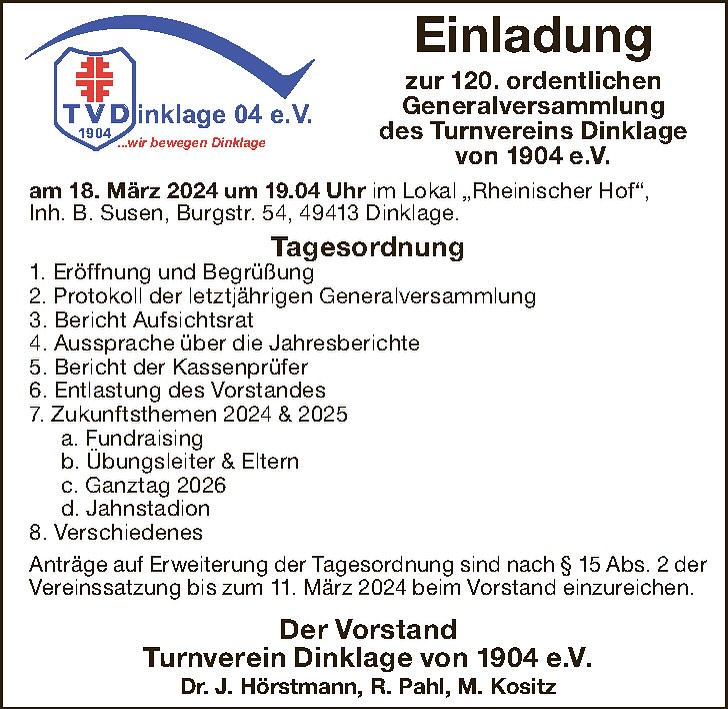 TV Dinklage von 1904 e.V. – Mit Tradition in die Zukunft.