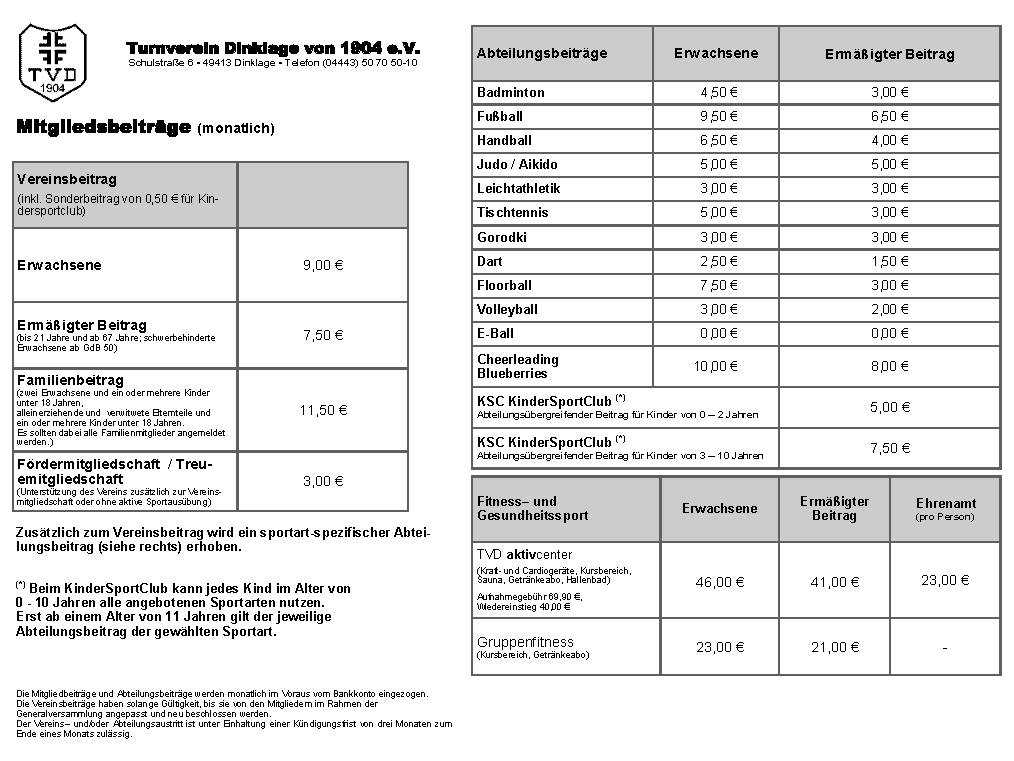 Werde Mitglied im TV Dinklage 1904 e.V. Hier geht es zum Aufnahmeantrag.