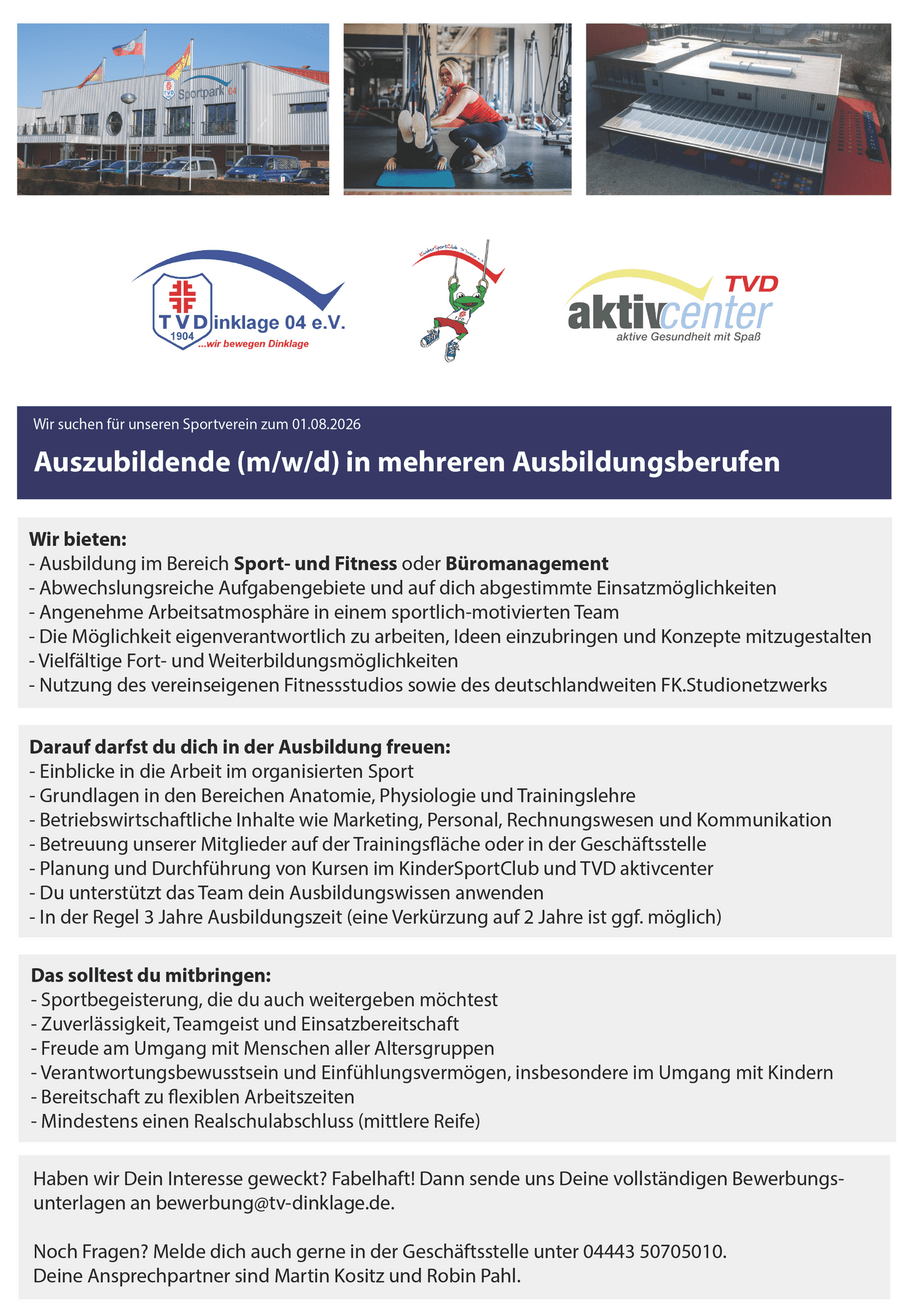 Tel.: 04443 507050-0 Fax: 04443 507050-29 geschaeftsstelle@tv-dinklage.de