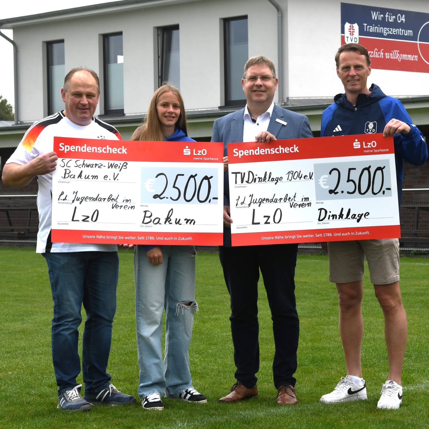 Die LzO stellt dieses Jahr 5.000 € für die Vereine der Olympia-Medaillen-Gewinner von Paris zur Verfügung. Dank der Bronze-Medaille von @vivien_endemann und dem @dfb_frauenteam dürfen die Fußballabteilung vom TV Dinklage und der SC Schwarz-Weiß Bakum über jeweils 2.500 € freuen. Als kleines Dankeschön erhielt Vivien von der Fußballabteilung das Supporter-Trikot!