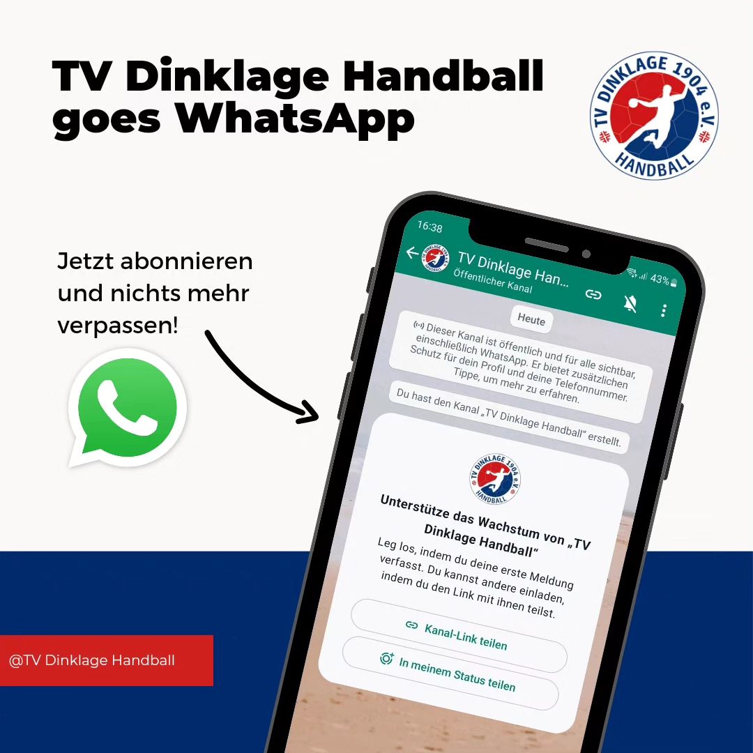 Wir haben uns dazu entschlossen, eine weitere Kommunikationsplattform zu nutzen und einen WhatsApp Kanal zu eröffnen. Abonniert gerne unseren Kanal "TV Dinklage Handball" und verpasst keine Infos mehr rund um unseren Verein.