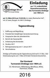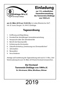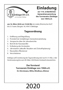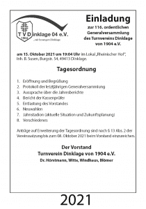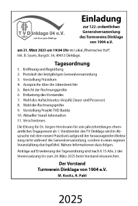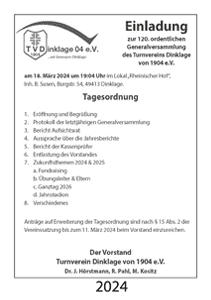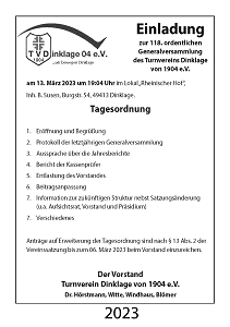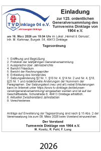 Werde Mitglied im TV Dinklage 1904 e.V. Hier geht es zum Aufnahmeantrag.
