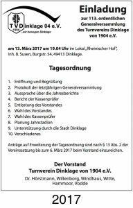 Tel.: 04443 507050-0 Fax: 04443 507050-29 geschaeftsstelle@tv-dinklage.de